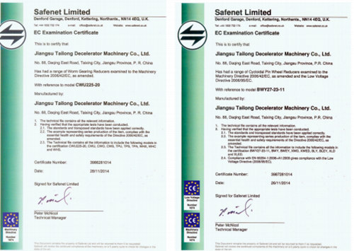 泰隆減速機質量認可證書